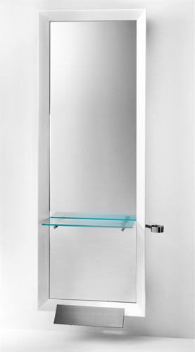 Arbetsplats från Kiela. Stor spegel med glashylla, inbyggt fotstöd