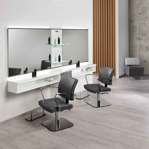 Designad specifikt för att respektera ergonomiska principer, har den anatomiska stoppningen i rygg och sits två olika densiteter för total komfort. Slutligen gör Hannah det möjligt att skapa en perfekt matchande design för både styling- och tvättområden. Denna stylingstol är nämligen kombinerad med Salon Ambience schamponeringsenhet, Compact, för dubbelt så mycket mode och stil.