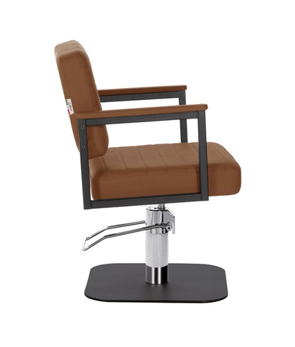 Andrea utstrålar en stark karaktär och en industriell stil. Stolens övergripande fyrkantiga design framhävs av de svarta metallarmstöden, kompletterade med en extra stoppad armstödsyta. Den bekväma sitsen och det breda ryggstödet är försedda med quiltade sömmar som ger stolen personlighet och karaktär.