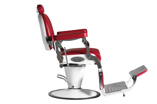 Snygg barberstol med fällbar rygg för bästa komfort. Den handgjorda klädseln tillverkas och sys i Italien, i Reggio Emilia, enligt de strängaste europeiska standarderna. Dessutom kan klädseln anpassas genom att välja mellan ett brett utbud av färger utan extra kostnad!