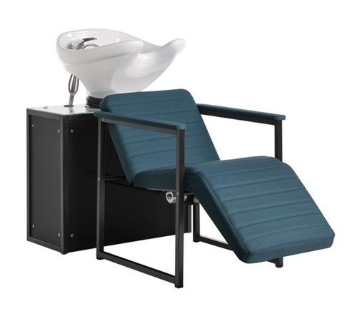 Alba tvättstolen från Andrea stylingstolsfamiljen erbjuder en halvliggande sits med en elektrisk fotstödsknapp för ultimat komfort. Med quiltad sömnad för en retrokänsla finns den i flera färger utan extra kostnad. Kan även får med svart handfat.