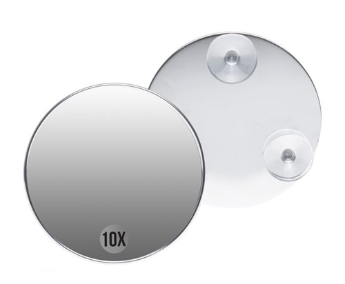 En lite större förstoringsspegel med sugkopp på baksidan så den säkert kan fästas på andra speglar.