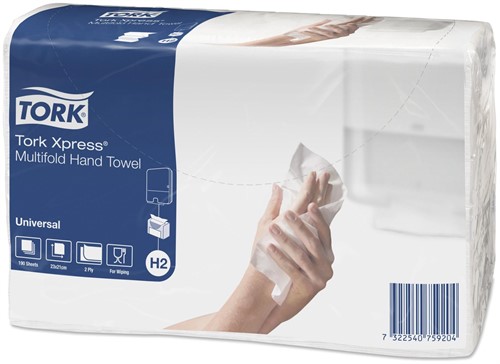 Tork Xpress® Multifold är en handduk i hög kvalitet som passar i Tork Xpress dispenser H2