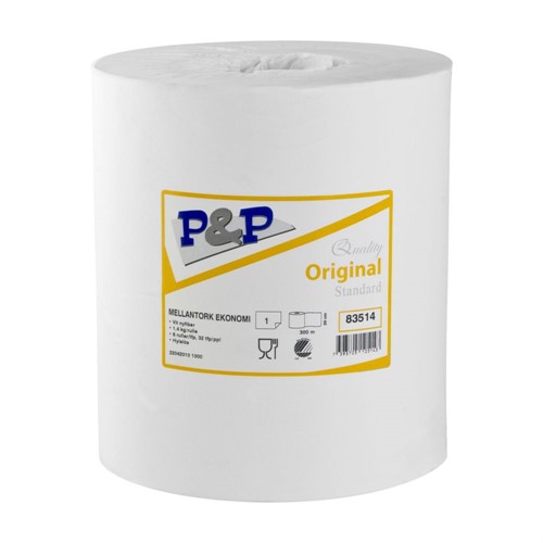 Våtstarkt, centrummatat papper som passar för i stort sett all avtorkning.