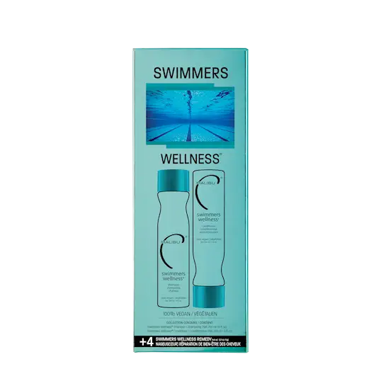 Trassligt, tovigt, missfärgat simmarhår? Detta exklusiva kit har allt du behöver för att ta bort klor, koppar och andra poolämnen samtidigt som det skonsamt rengör och vårdar. Upptäck ett glansigare, friskare och tovfritt hår! Sulfatfri schampo och näringsrik balsam arbetar med de veckovisa behandlingarna för att hålla ditt hår mjukt, glansigt och friskt!