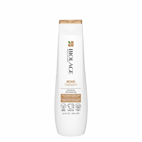 Bond Therapy Shampoo är ett skonsamt rengörande schampo som bygger bindningar inifrån. Den låga pH-formulan vårdar överbehandlat hår, stärker håret, minskar antalet avbrutna hårstrån, lämnar det mjukare och jämnare samt lättare att hantera. Berikat med en kraftfull och mild kombination av kokosolja och citronsyra. Den vårdande kokosoljan ger näring och återfuktning till hårstråna för ett friskare hår. De skyddar hårets yta och lämnar det glansigare, lenare och konditionerat på djupet. Citronsyran stärker försvagade bindningar i håret för att förbättra styrkan och motståndskraften. Veganskt och passar alla hårtyper.