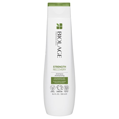 Strength Recovery Shampoo är ett krämigt schampo som skonsamt rengör, slätar ut och gör håret mjukt utan att tynga ner. Schampot gör håret mer konditionerat, mer lätthanterligt samt mindre antal avbrutna hårstrån. Det ger 3x starkare hår efter endast en användning och passar därför extra bra till svaga och sköra hår. Berikat med aktivt veganskt squalane som omedelbart reparerar håret. Squalane efterliknar hårets naturliga lipider och när det används i aktiva nivåer hjälper det till att fylla på och skydda från framtida skador samtidigt som det ökar mjukheten och glansen. Schampot är även berikat med vegetabiliska mjukgörare som verkar på hårfiberns yttre lager, vilket ger naturlig näring och gör håret smidigt. Passar alla hårtyper, även grått och färgat hår. Schampot har en parabenfri och vegansk formula samt en doftblandning av frukt, blommor och kryddor.