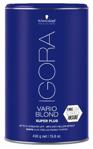 Vario Blond Super Plus är ett vitt och dammfritt blonderingspulver med upp till 8 stegs uppljusning. Blonderingspulvret har en integrerad Fibre Bond-teknologi som stärker hårets bindningar och minskar antalet avbrutna hårstrån märkbart. Det vita pulvret ger en antigul-effekt för maximal neutralisering samtidigt som det har en len och krämig konsistens för en säker och jämn applicering.