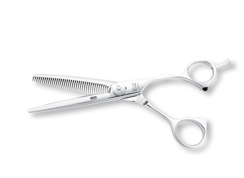 Trasselfri design: Mellanrummen mellan tänderna är avsmalnande (tapered) inåt mot bladets kärna. Denna utformning gör att håret inte fastnar eller trasslar när saxen dras ur håret efter ett klipp.