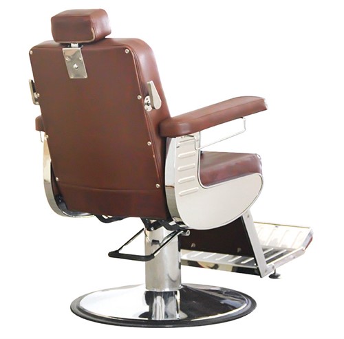 Den moderna stolen i retro design är tillverkad av konstläder i hög kvalité och ger en skön sittkomfort tack vare den bekväma stoppningen. Den kan lätt ändras till liggande läge.Det justerbara huvudstödet kan flyttas upp eller ned efter behov.  Säteshöjden kan lätt justeras via den runda kromfoten med hydralisk pump. Stablila handdukshållare finns monterade på sidan av stolen. Hela fotstödet är förkromat och går att svänga uppåt.  De praktiska räfflorna förhindrar att fötterna halkar.