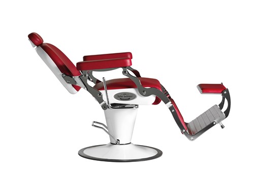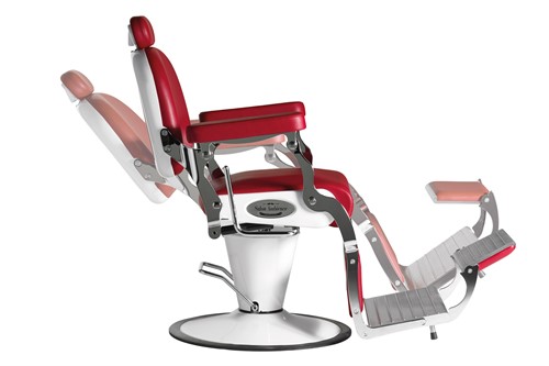 Snygg barberstol med fällbar rygg för bästa komfort. Den handgjorda klädseln tillverkas och sys i Italien, i Reggio Emilia, enligt de strängaste europeiska standarderna. Dessutom kan klädseln anpassas genom att välja mellan ett brett utbud av färger utan extra kostnad!