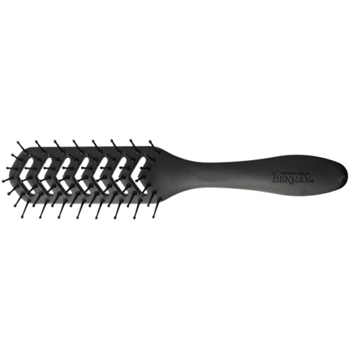 Svart Denman borste med tunnelformad ihålig konstruktion med luftöppningar på fram- och baksida. Knopparna har en lack som står emot allt de kan utsättas för på salongen. Ergonomiskt handtag.