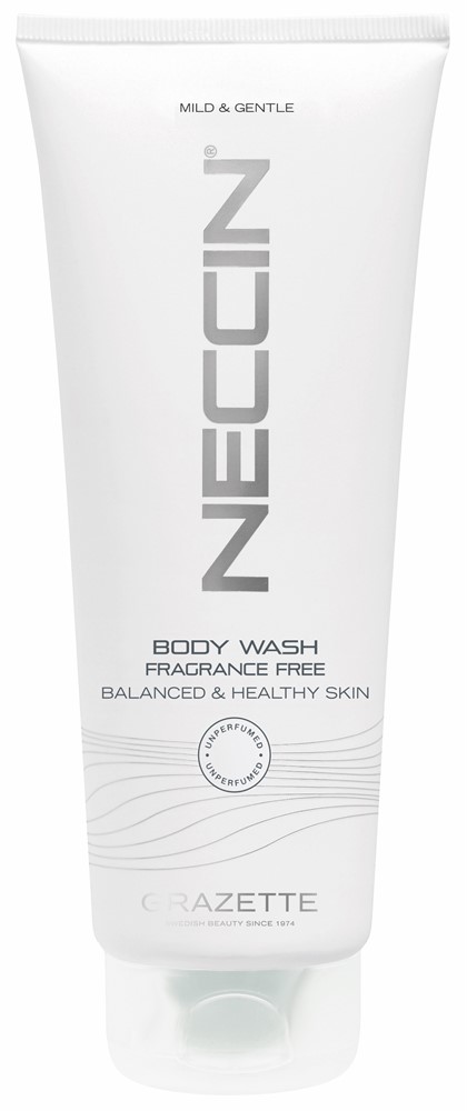 Neccin Body Wash är en parfymfri, skonsam, milt rengörande dushtvål med krämig känsla. Den går bra att använda till både till hår och hud. Formuleringen är baserad på skonsamma växtbaserade sockertensider och milda aminosyrabaserade tensider för en optimalt ren och återfuktad hud. Innehåller det aktiva ämnet Piroctone Olamine som främjar mikrofloran för en balanserad hud samt återfuktande Pantenol.