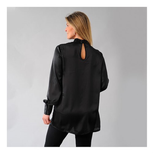 Poloblouse Satin Lady är en bekväm och funktionell lite längre blus med hög krage samt knäppning i ärmarna.