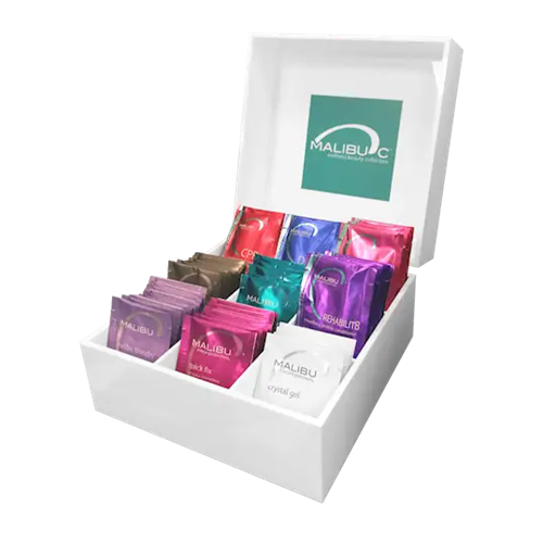 Praktisk låda för att kunna sortera Malibu C sachéer, samt underlätta för frisörer att hålla fint och organiserat i färgrummet. (Sachéer ingår ej)