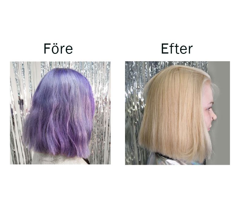 Gör såhär: Skaka flaskan till vätskan är nästa helt vit. Mixa en del blekning med 7 delar Direct Dye remover. Applicera generöst på torrt eller handdukstrokat hår. Låt verka i 45 minuter.