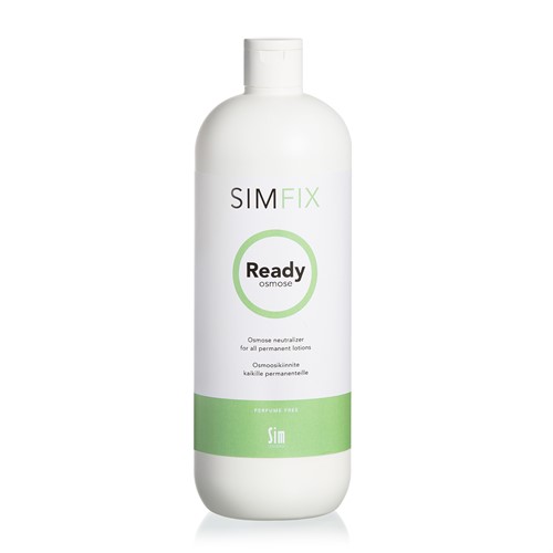 Använd skyddshandskar. Skölj håret rikligt med vatten i cam 5 minuter beroende på hårlängd. Torka försiktigt håret med en handduk. Häll den erforderliga mängden SimFix Ready Osmose neutrailsatorn i ett kärl av plast eller keramik eller i en applikatorflaska. Applicera jämt på spolarna och låt verka i 5 minuter. Ta bort spolarna och applicera resten av neutralisatorn på hårets toppar. Låt verka i 5 minuter. Skölj håret ordentligt och använd sedan balsam.